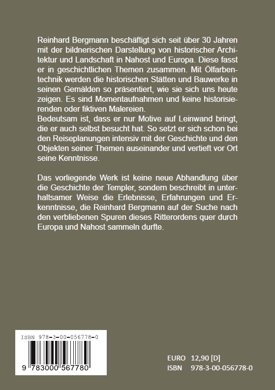 Ich freue mich, in diesem Zusammenhang auch auf mein Buch unter dem Titel "Auf den Spuren der Templer zur Malerei" aufmerksam machen zu können, das auf unterhaltsame Weise einen Einblick in meine Reisen hinsichtlich der Wirkungstätten der Templer gibt.